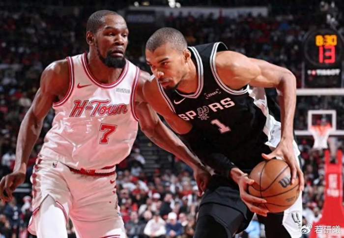 于是火箭球在外围不断传导,却总是在阿门手中停滞。他既不敢果断出手,又害怕传球后队友被夹击,导致进攻节奏完全被打乱。末节的一个经典回合最能说明问题:杜兰特将球分给阿门,阿门犹豫后又回传给杜兰特,杜兰特强行单打卡斯尔,试图制造杀伤。结果文班亚马瞬间从弱侧协防而来,送出一记干净利落的大帽。这记盖帽是对火箭进攻软肋的精准打击。整个下半场,火箭的进攻效率急剧下滑,两节比赛只拿到37分。球权流动变得迟缓而犹豫,而马刺则越战越勇。尽管阿门全场砍下25分7篮板4助攻3抢断,投篮23中11,数据看似不错,但他的存在恰恰成了马刺精心布置的“陷阱”。